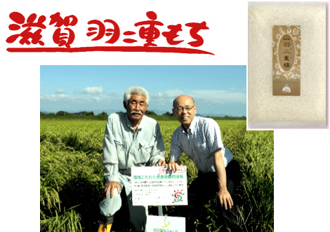 一番人気は、何と言っても滋賀の米作り名人・薗田耕一さんが丹精込めて育てた減農薬・無化学肥料栽培の滋賀羽二重糯です。長年土づくりにこだわり、食品リサイクルで堆肥を作り田んぼに還元した循環型のエコ農業に取り組んでいます。土の微生物の数は10億(通常は1億)にも達し、その微生物がコメのうまみを育んでいます。お餅にするとよく分かりますが、とにかくうまいです!一度薗田さんのお餅を食べた人は、虜になるみたいです。